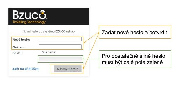 Vaše nové heslo je testováno na Sílu hesla. Pokud není dostatečně „silné“, systém Vám neumožní nastavení takového hesla. V případě, že Vámi zvolené heslo je dostatečně silné, můžete po dvojím zadání daného hesla stisknout tlačítko "Nastavit heslo" a vstoupit do administrace systému Bzuco.