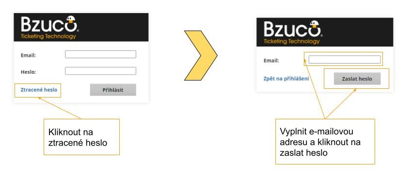 Pro první spuštění systému je nutné provést přihlášení s pomocí Vaší e-mailové adresy, která Vám byla přidělena. Dále budete potřebovat heslo, vyžádejte si jej kliknutím na odkaz: Ztracené heslo v přihlašovací obrazovce.