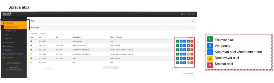 Vedle názvu akce zvolíte druhou ikonu “Vstupenky”