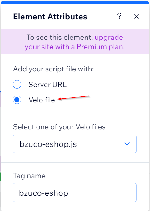 - Přidejte nový Custom Element podle návodu: Wix Editor: Adding a Custom Element to Your Site.